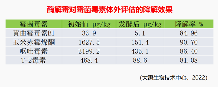 大禹生物的生物降解霉菌毒素產(chǎn)品是通過(guò)復(fù)合微生態(tài)制劑來(lái)表達(dá)氧化還原酶(去氧環(huán)化酶)、水解酶、轉(zhuǎn)移酶等霉菌毒素降解酶,降解霉菌毒素的毒性基團(tuán)、破壞霉菌毒素活性中心,致使霉菌毒素毒性變?nèi)趸蜃兂蔁o(wú)毒物質(zhì)。