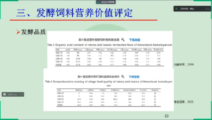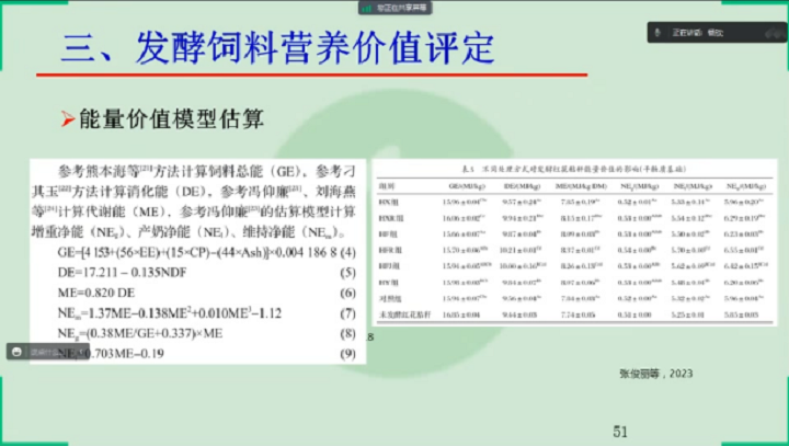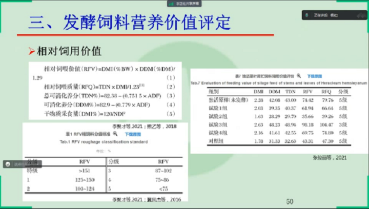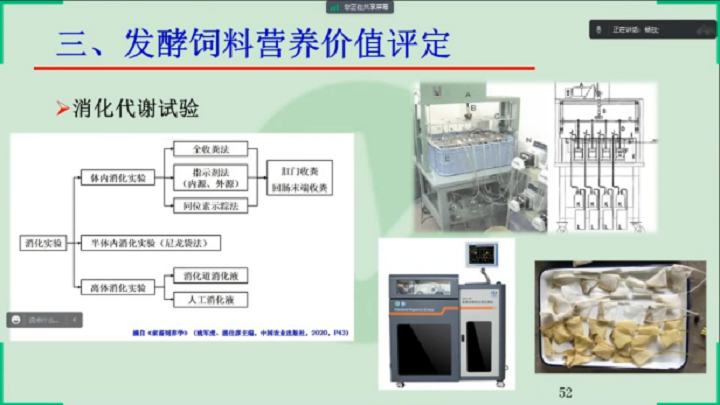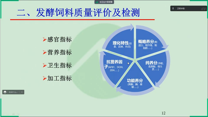 楊教授從發(fā)酵飼料進(jìn)展概述、發(fā)酵飼料質(zhì)量評(píng)價(jià)與檢測(cè)以及發(fā)酵飼料營(yíng)養(yǎng)價(jià)值評(píng)定三個(gè)方面講解了發(fā)酵飼料質(zhì)量檢測(cè)與營(yíng)養(yǎng)價(jià)值評(píng)定。