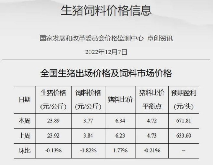 國家發(fā)改委:豬糧比價進入過度下跌二級預警區(qū)間